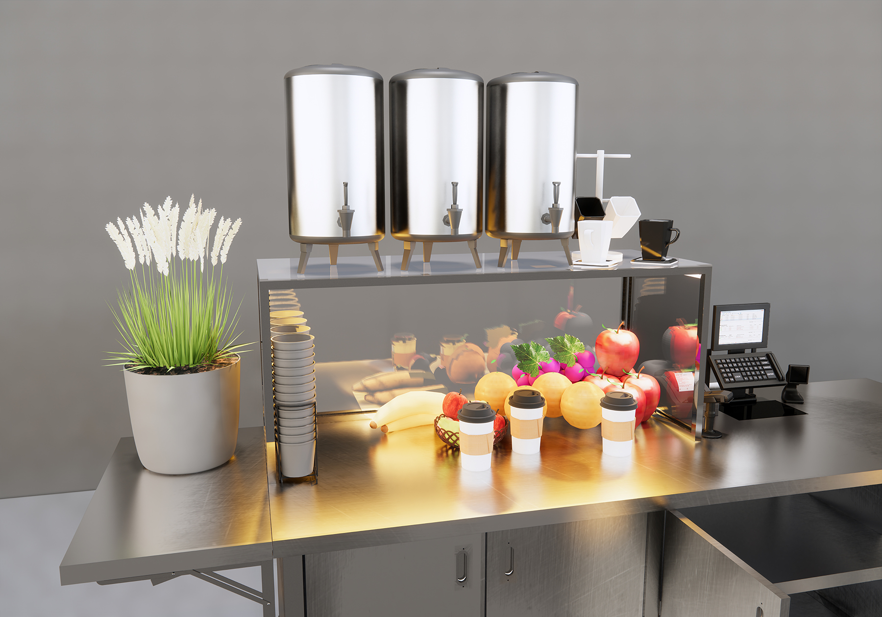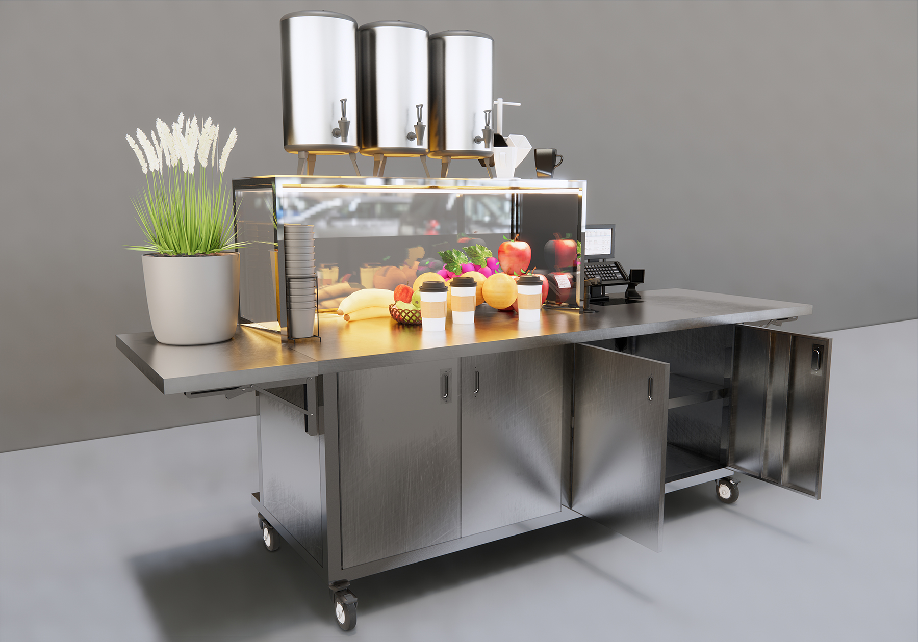 Thiết kế thông minh: 4 cánh tủ mở 🔄, dễ dàng tiếp cận và sắp xếp hàng hóa bên trong, với mặt trước thông minh phù hợp cho việc làm hộp LED quảng cáo.